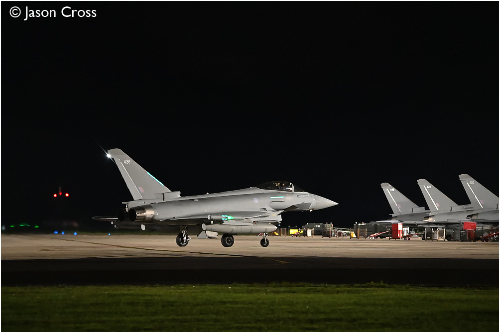 Typhoon ZK436 returns from a night sortie at RAF Coningsby. Date: 7 October 2020 Manipulation Notes: None