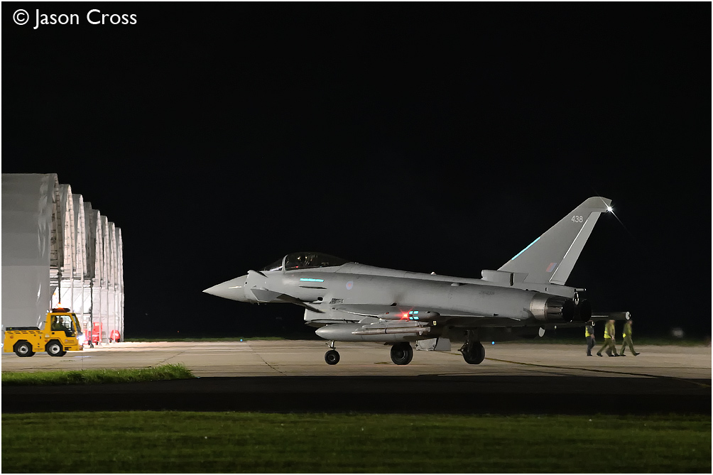 Typhoon ZK438 returns from a night sortie at RAF Coningsby. Date: 7 October 2020 Manipulation Notes: None