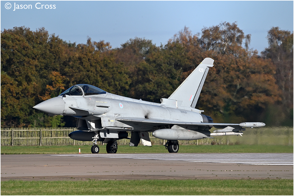 Typhoon FGR4 ZK429 lining up for take off at RAF Coningsby. Date: 4 November 2020 Manipulation Notes: None