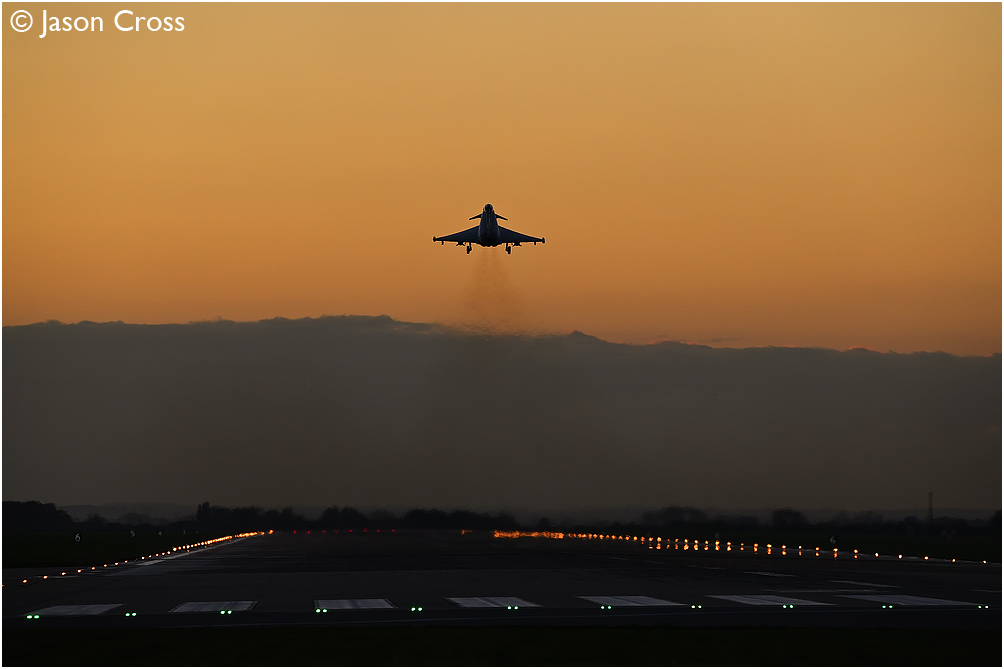 RAF Coningsby dusk recovery, Typhoon FGR4 (touch and go). Date: 4 November 2020 Manipulation Notes: None