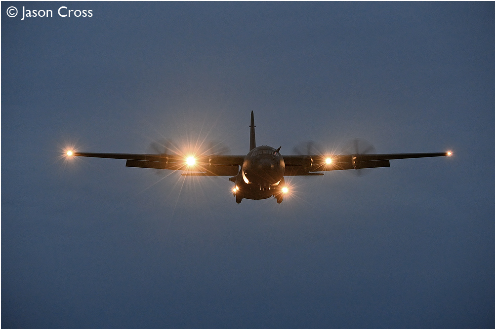 RAF C-130J Hercules ZH872 on final approach to runway 25 at RAF Brize Norton. Date: 9 December 2020 Manipulation Notes: None