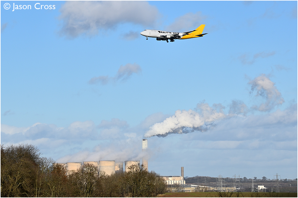 Kalitta Air Boeing 747 N743CK approaching runway 27 at East Midlands Airport with a cargo flight from Brussels. Date: 22 January 2021 Manipulation Notes: None