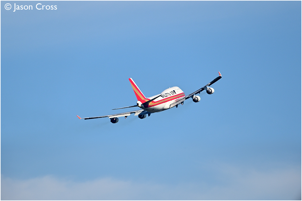 Kalitta Air Boeing 747 N708CK departs East Midlands Airport runway 09 with flight CKS330A to Los Angeles. Date: 17 April 2021 Manipulation Notes: None