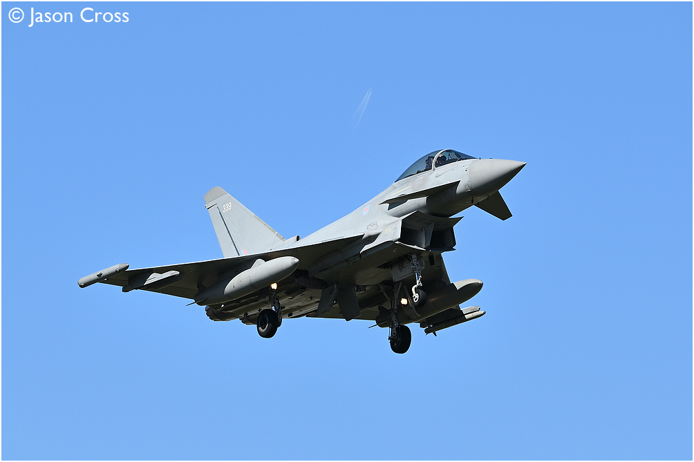 Typhoon FGR4 ZK339 on final approach to runway 07 at RAF Coningsby. Date: 23 April 2021 Manipulation Notes: None
