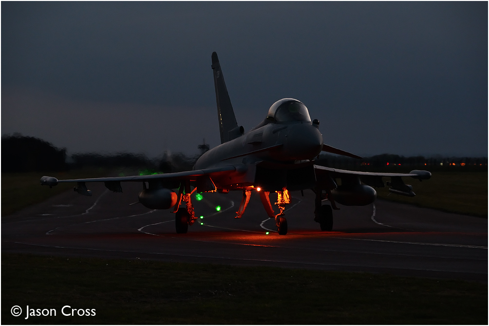 A Typhoon FGR4 making its way along taxiway bravo at RAF Coningsby.