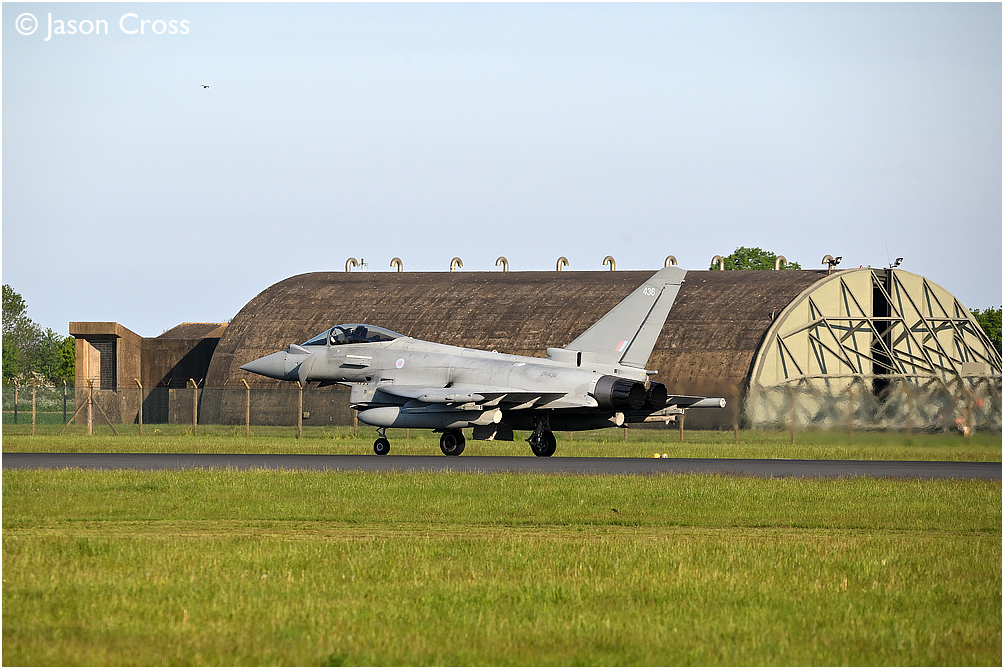 Typhoon FGR4 ZK436 rolling down the runway shortly after landing. RAF Coningsby. Date: 26 May 2021 Manipulation Notes: None