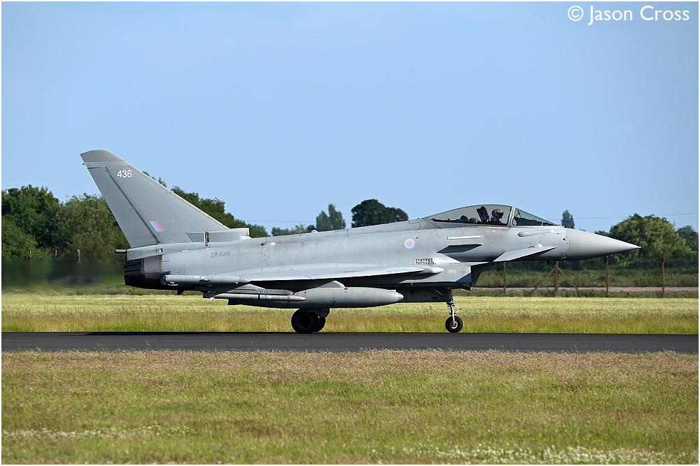 Typhoon FGR4 ZK436 taking off from 25 end.