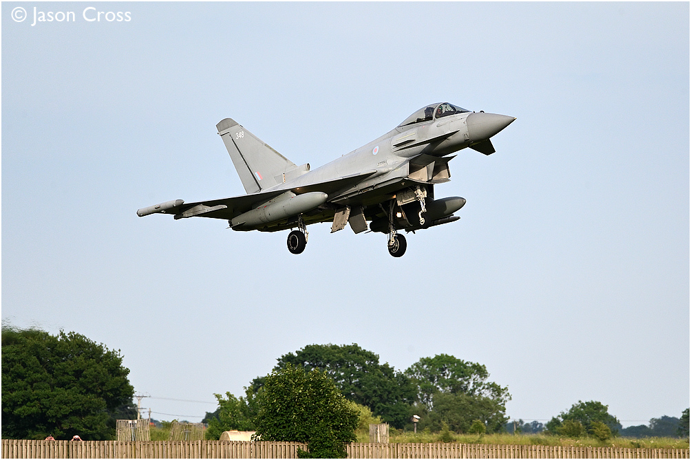 Typhoon FGR4 ZK348 on final approach to runway 25. RAF Coningsby. Date: 16 June 2021 Manipulation Notes: None