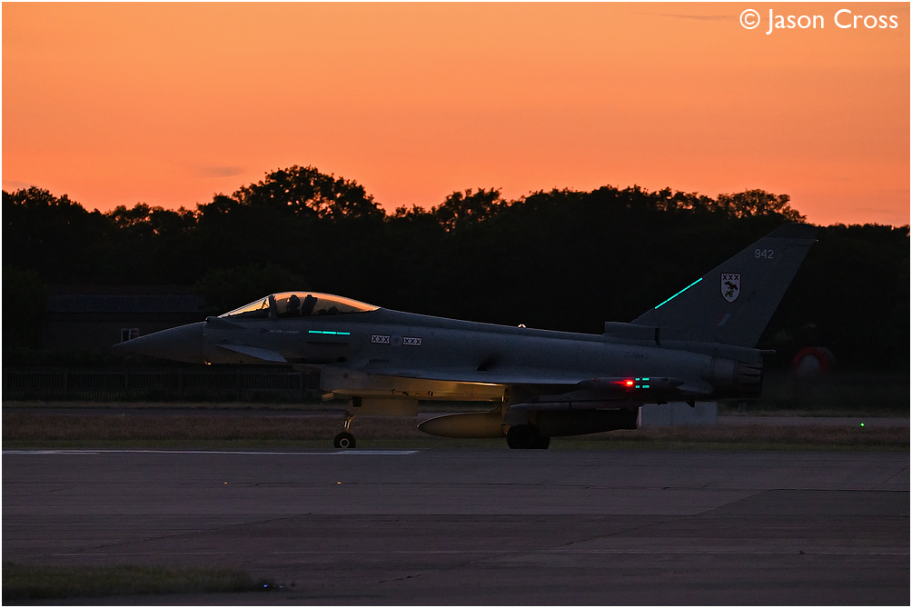 Typhoon FGR4 ZJ942 waits for clearance to take off from runway 25. RAF Coningsby. Date: 16 June 2021 Manipulation Notes: None