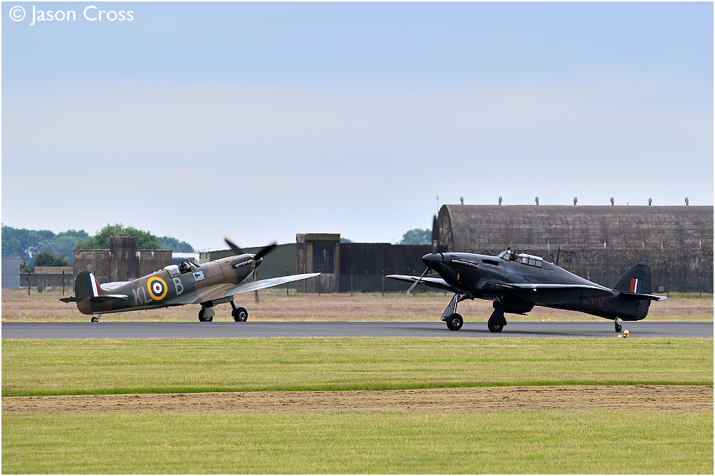 Supermarine Spitfire MkIIa P7350 and Hawker Hurricane MkIIc PZ865 (disguised as BE634 of 247 Squadron)