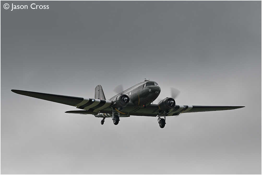 Douglas C47-A Dakota ZA947 on final approach to runway 07 at RAF Coningsby. Date: 26 June 2021 Manipulation Notes: None