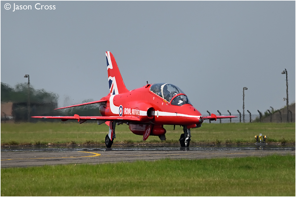 Red Arrows Hawk T1A XX219 taxiing in after landing at RAF Scampton from RAF Lossiemouth.