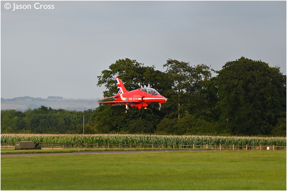 Red Arrows Hawk T1A XX219 on approach to runway 22 at RAF Scampton at the end of a transit flight from RAF Valley.