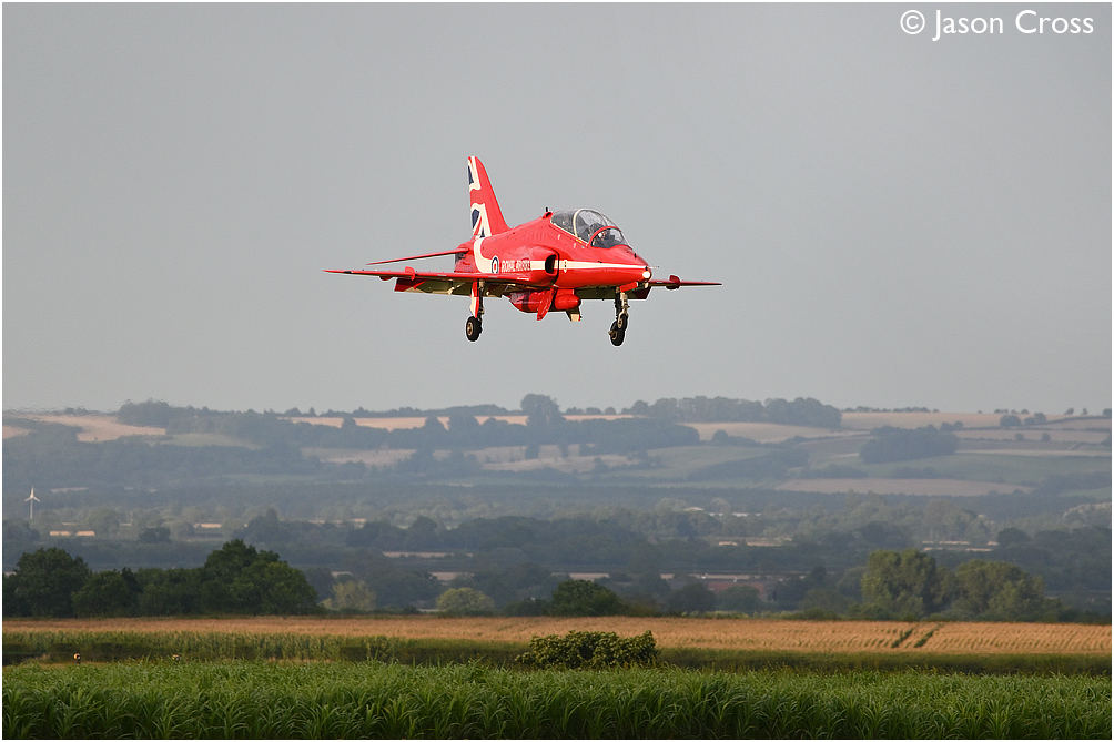Red Arrows Hawk T1A XX325 on approach to runway 22 at RAF Scampton at the end of a transit flight from RAF Valley. Date: 12 August 2021 Manipulation Notes: None