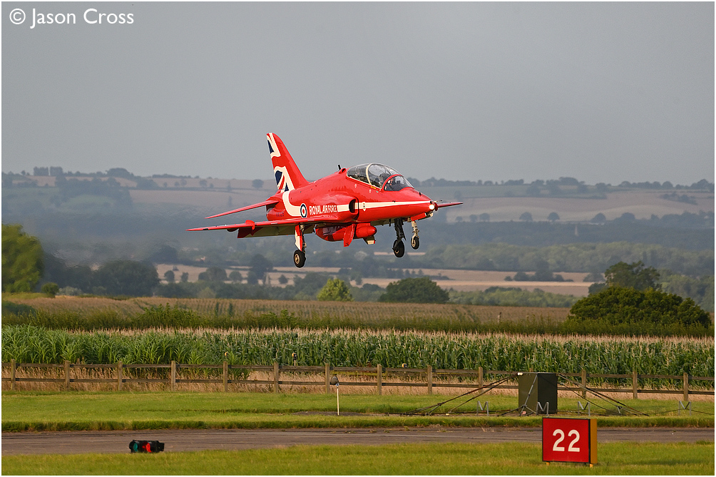Red Arrows Hawk T1A XX325 on approach to runway 22 at RAF Scampton at the end of a transit flight from RAF Valley.