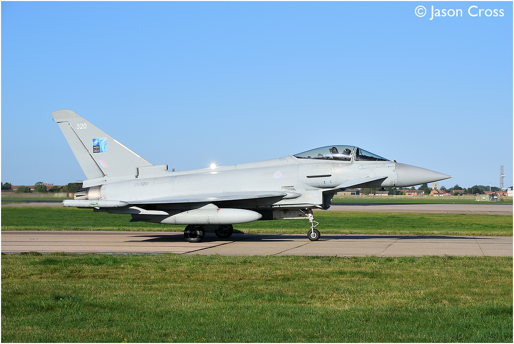 Typhoon ZK320 on taxiway bravo at RAF Coningsby.