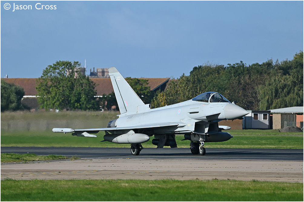 Landing on runway 07 at RAF Coningsby is ZK322 which was returning to Coningsby from Orange in France. Date: October 2021 Manipulation Notes: None