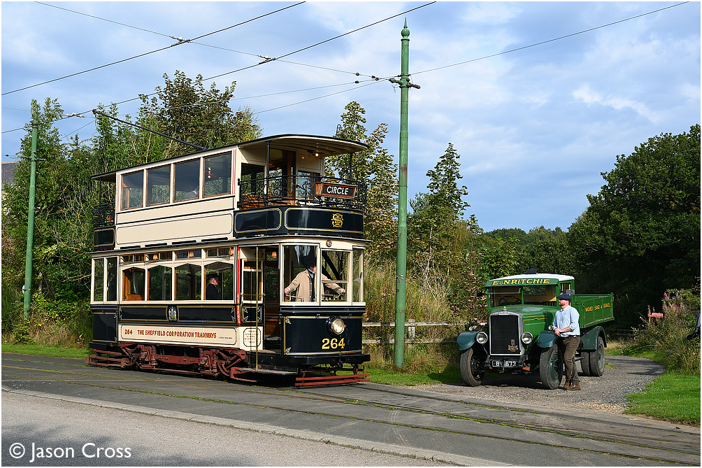 Sheffield 264 and a Leyland Cub tipper lorry. Beamish Open Air Museum. David Williams photo charter. Date: 17 September 2021 Manipulation Notes: None