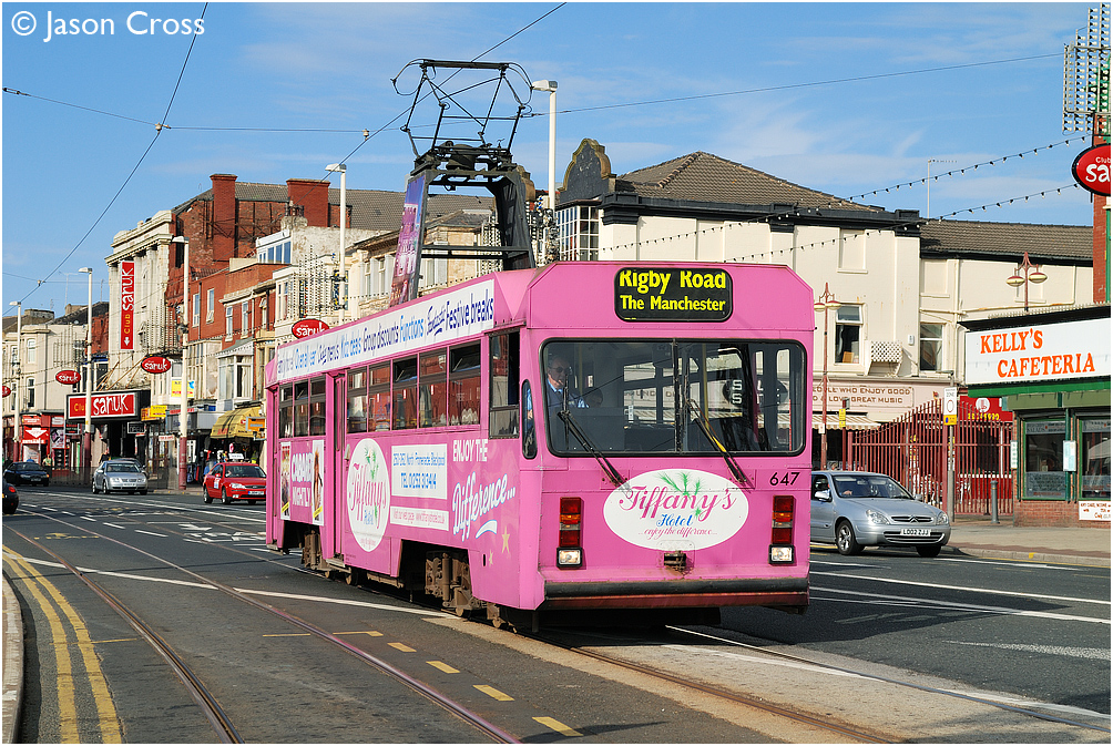 647 goes around the Metropole with a Bispham to Rigby Road (and into depot) special. Date: 28 August 2007 Manipulation Notes: None