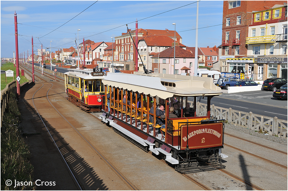 Blackpool & Fleetwood 2 and Manchester 765 are seen at Bispham while working a tram tour. Date: 12 September 2010 Manipulation Notes: None