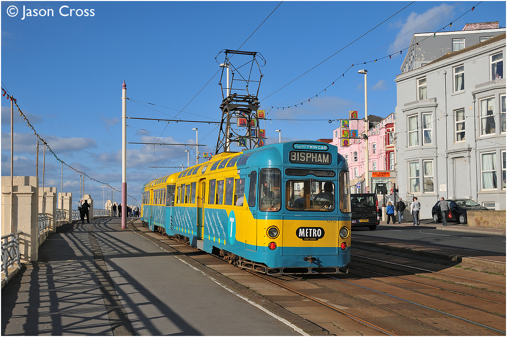 Twin set 3 has just emerged from depot and is passing Cocker Street while heading for Bispham as a special. Date: 25 September 2010 Manipulation Notes: None
