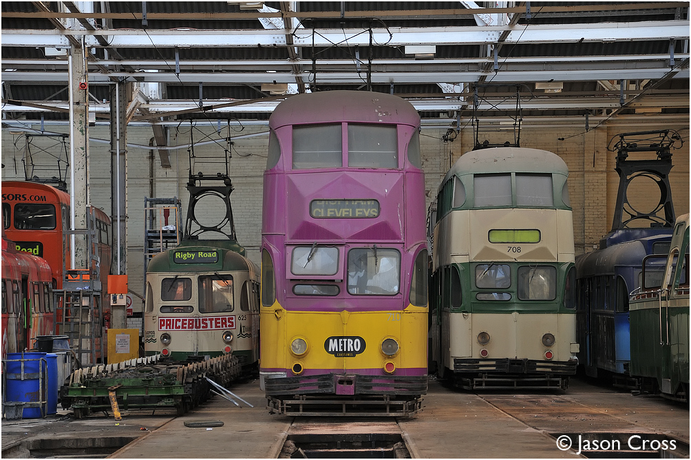 625, 710 and 708 are seen inside Rigby Road Depot.