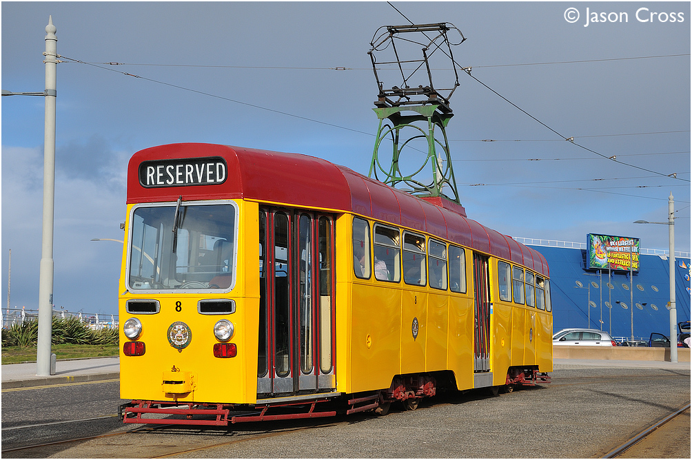 OMO 8 on Pleasure Beach loop while working a tram tour for the Lancastrian Transport Trust. Date: 6 November 2010 Manipulation Notes: None