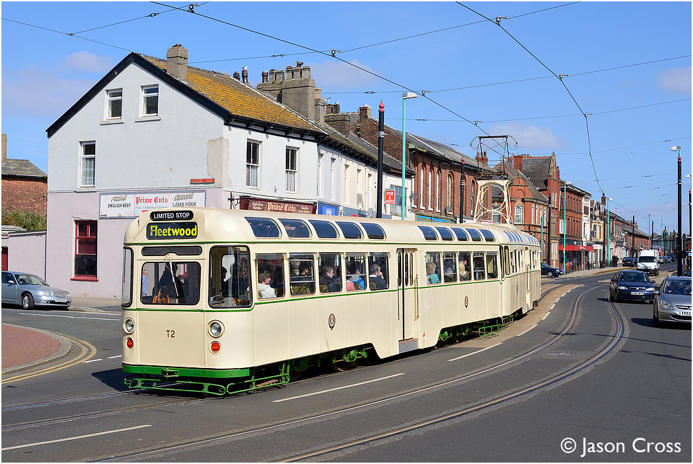 Twin set 272+T2 makes its way through Albert Square in Fleetwood while working a heritage tour. Date: 19 April 2014 Manipulation Notes: None