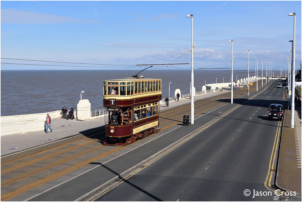 Bolton 66 on North Promenade with a southbound heritage tour. Date: 4 April 2015 Manipulation Notes: None Camera mounted on a tall pole and remotely fired