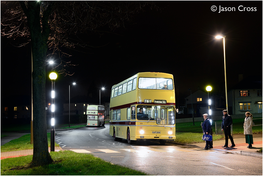 Scania Metropolitan 301 pauses on the zebra crossing on Liberty Road, Leicester EMRPS photo shoot. Date: 11 January 2015 Manipulation Notes: None