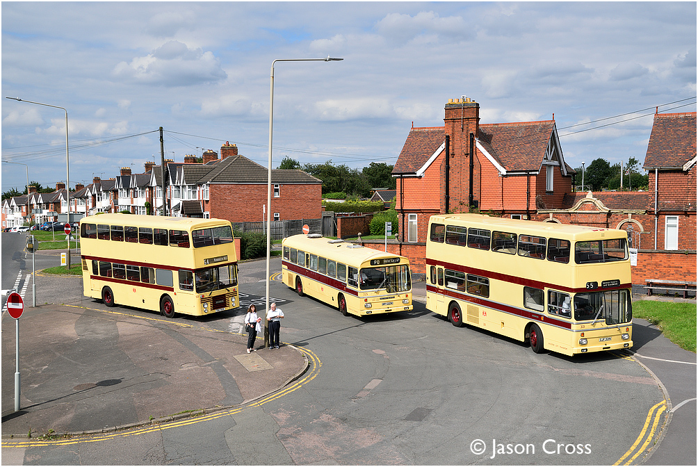 50, 225 and 301 on the General Hospital turning circle. EMRPS / LTHT Leicester City Transport bus photo shoot. Date: 13 August 2017 Manipulation Notes: None Camera mounted on a tall pole and remotely fired