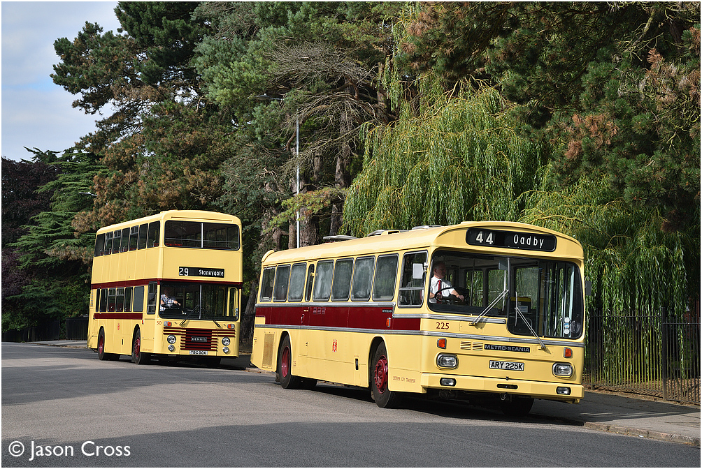 225 and 50 in Glebe Road, Stoneygate. EMRPS / LTHT Leicester City Transport bus photo shoot. Date: 13 August 2017 Manipulation Notes: None