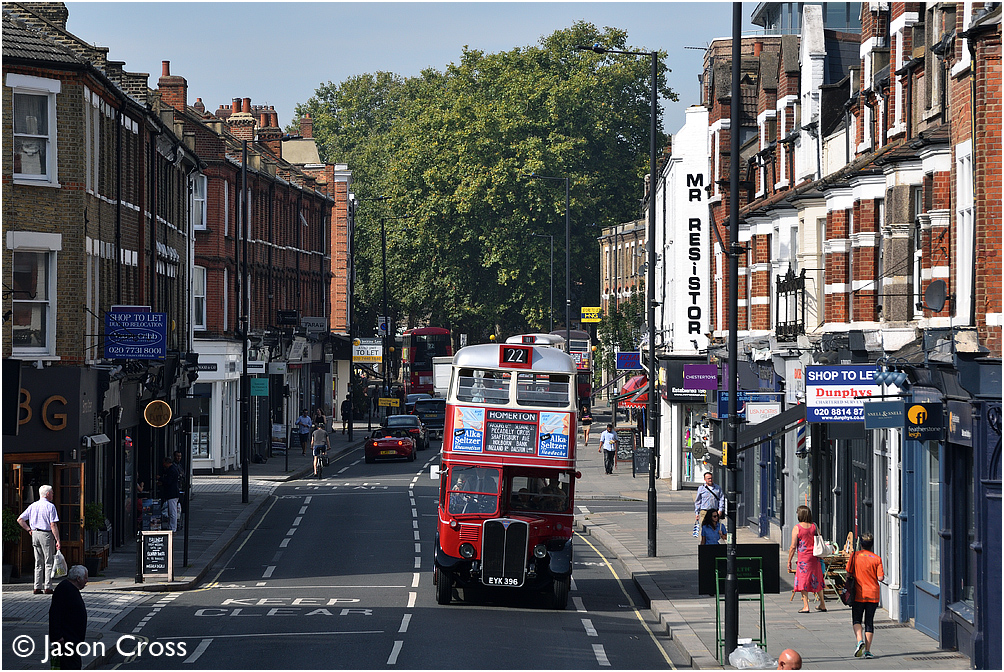 RT1 on New Kings Road in Fulham. RT1's 80th birthday road trip. Date: 24 August 2019 Manipulation Notes: None