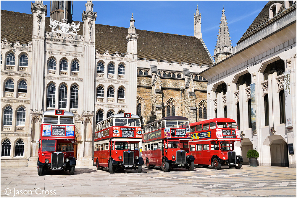 RT1, STL2377, STL441 and RT4779 lined up outside the Guildhall in London.