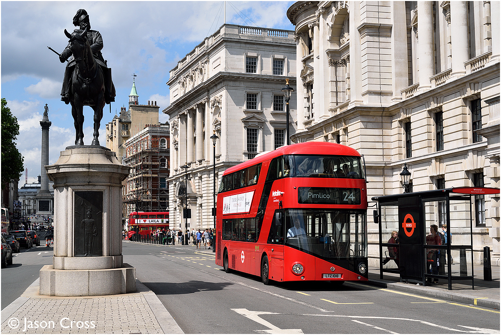 New Routemaster LT18 on Whitehall with a 24 for Pimlico.