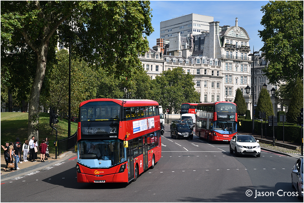 WHV158, Duke of Wellington Place, London, 22 Oxford Circus to Putney Common. Date: 24 August 2019 Manipulation Notes: None