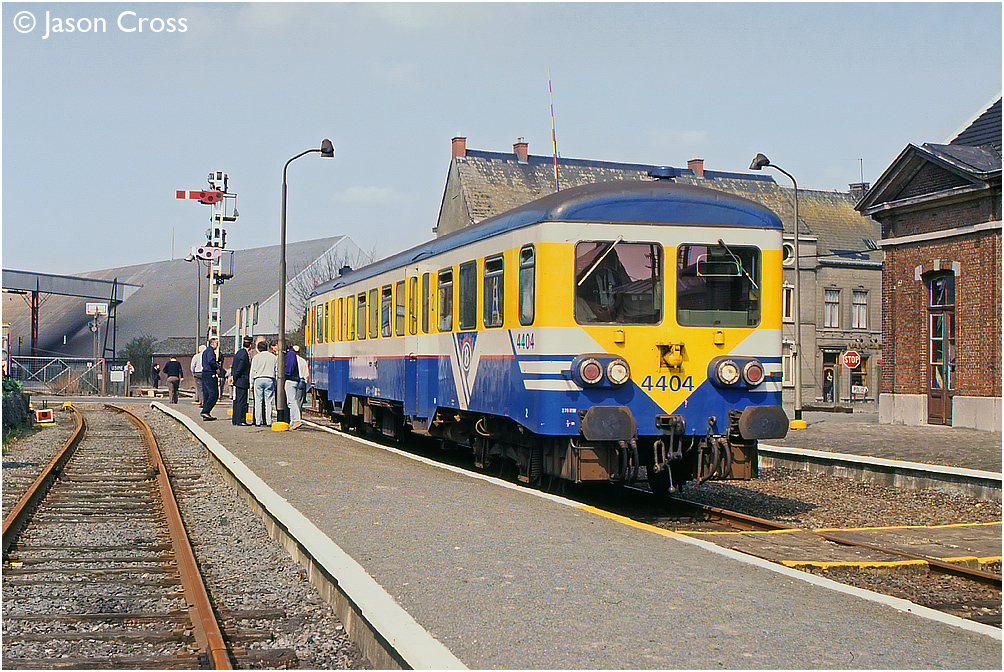 Class 44 DMU 4404 works an ADL railtour Frasnes-lez-Anvaing. This line has since closed and been lifted. Date: 3 April 1993