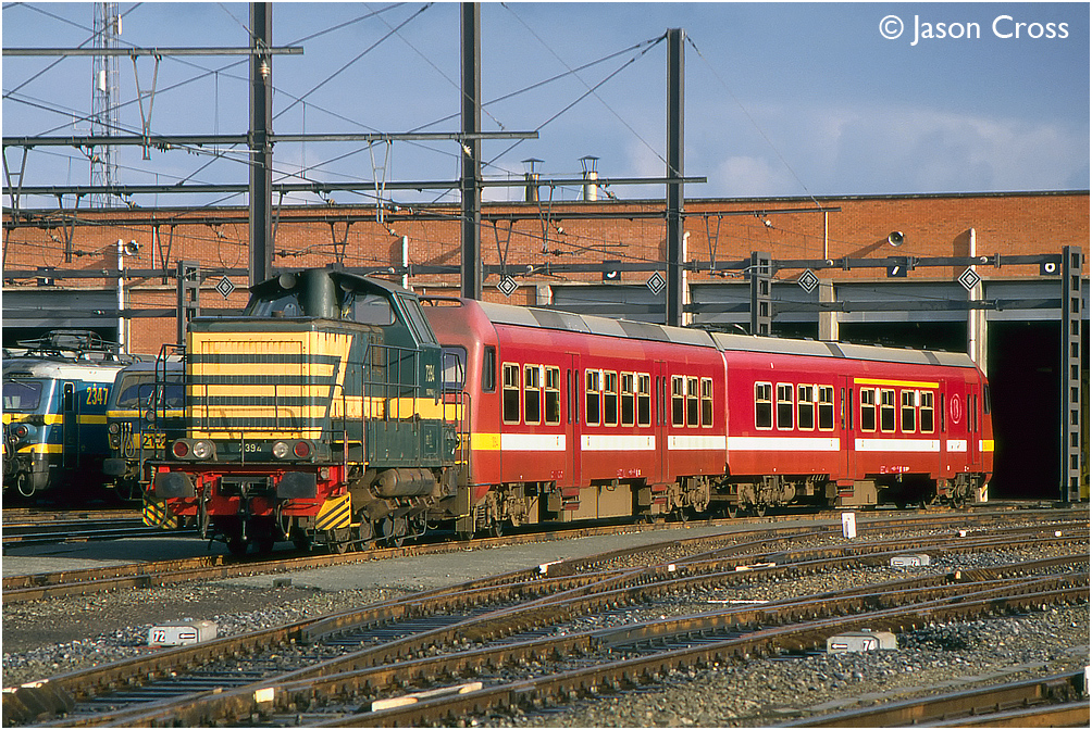 Shunter 7394 and type AM80 EMU 394 on Gent Merelbeke depot.