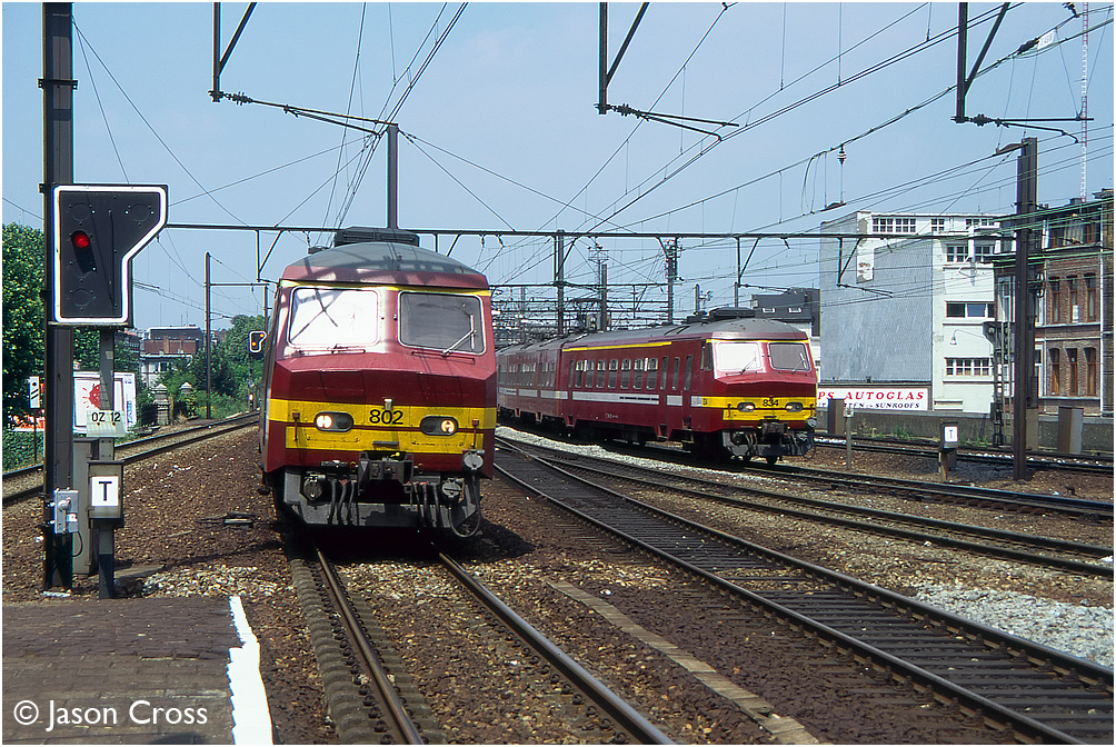Type AM75 EMUs 802 and 834 at Antwerpen-Berchem.