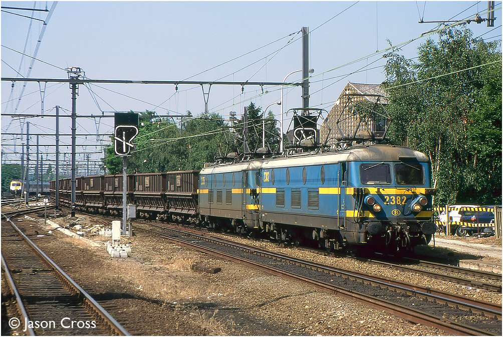 2382 and 2375 pass through Leuven with a southbound iron ore train.