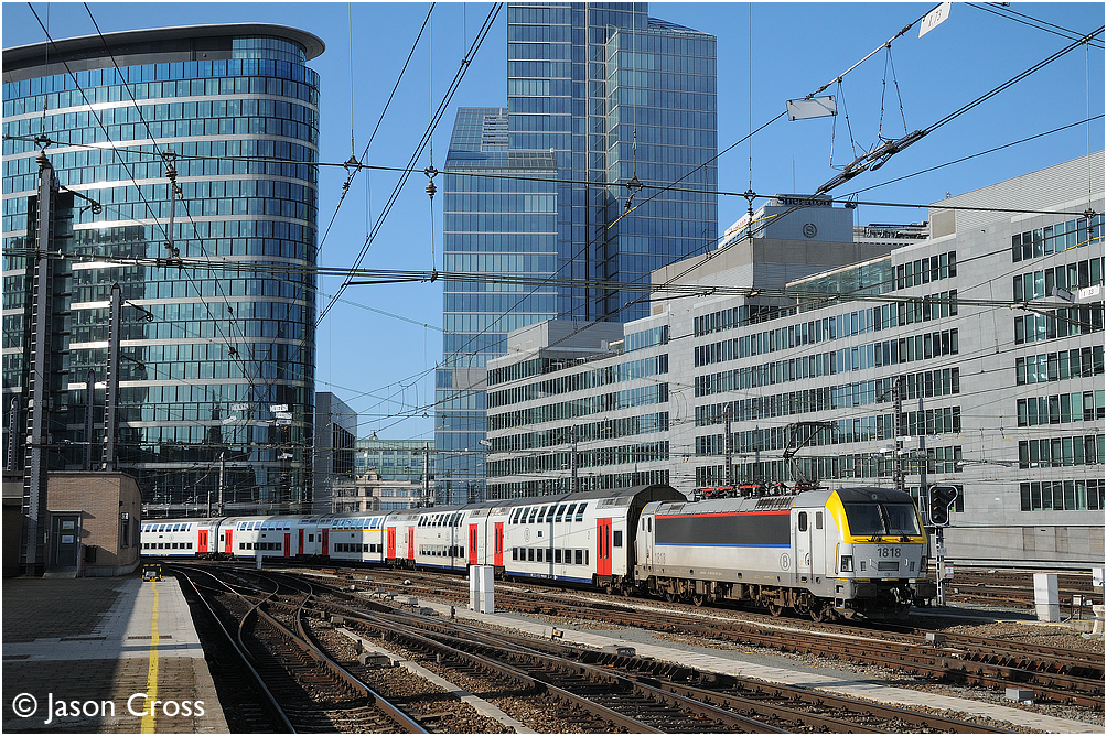 1818 pushes away from Brussel Noord with train IR3530 0907 Brussels Airport to Gent St Pieters. Date: 30 July 2012 Manipulation Notes: None