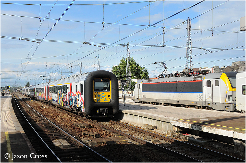 AM96 EMU 519 passes loco 1810 at Brussel Noord.