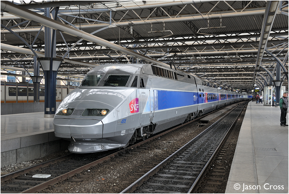 SNCF TGV 4515 at Brussels Midi with train TGV9836 1618 Brussels Midi to Montpellier. Date: 31 July 2012 Manipulation Notes: None