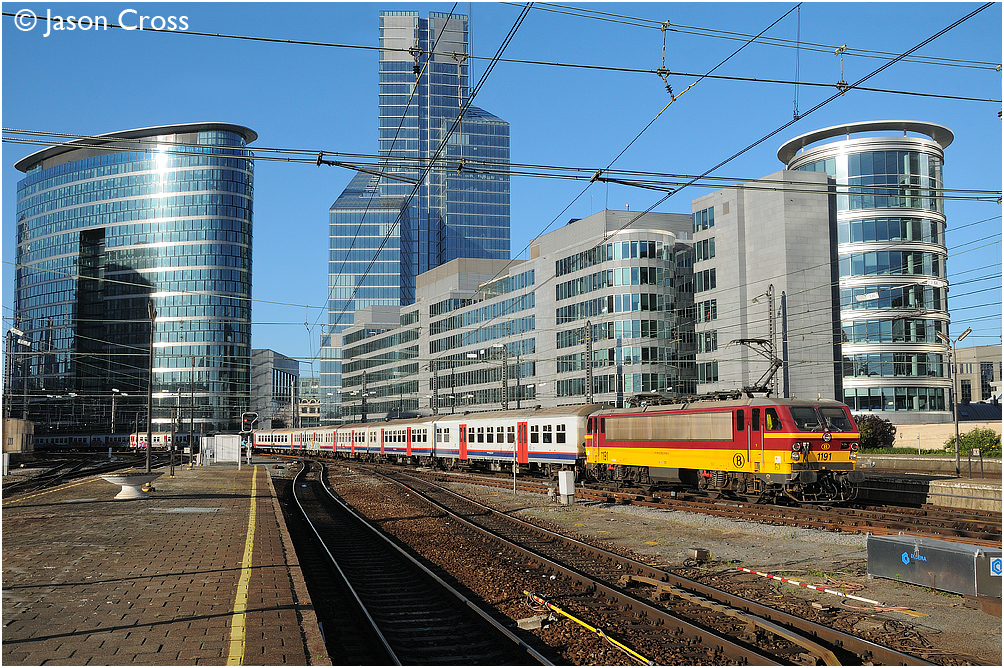 Former Benelux loco 1191 approaches Brussel Noord with train IC1906 0638 Mouscron to Scharbeek. Date: 1 August 2012 Manipulation Notes: None