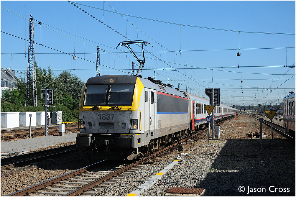 1837 arrives at Brussel Noord with train IC1731 0908 Liege Guillemins to Quievrain. Date: 1 August 2012 Manipulation Notes: None