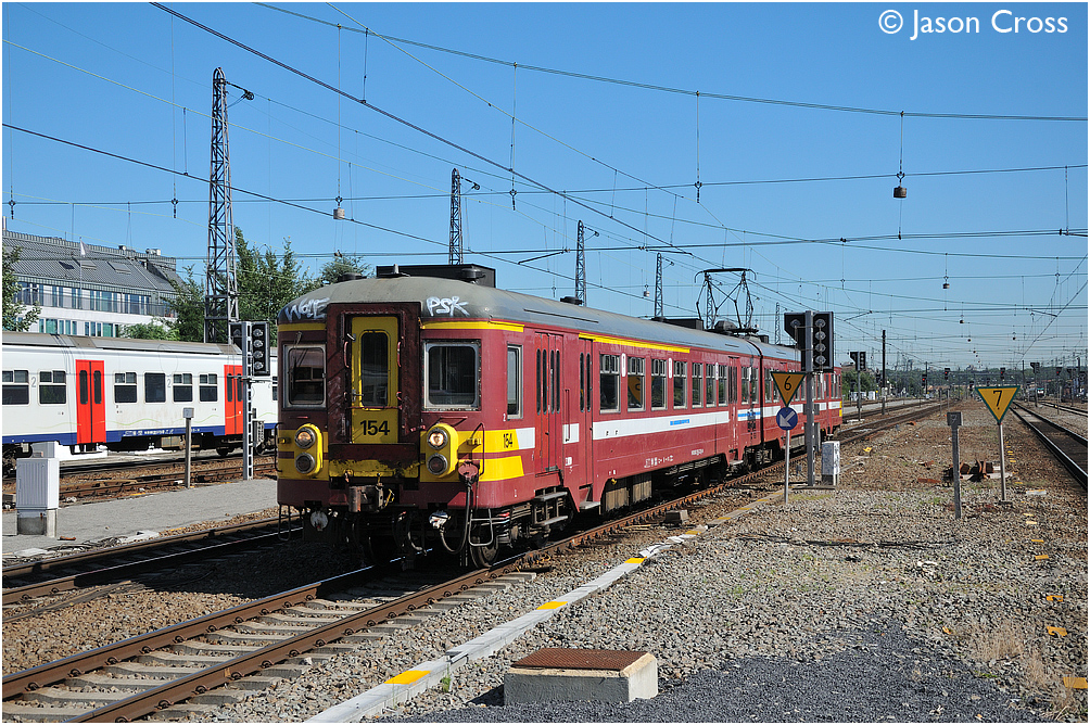 Type AM62 EMU 154 approaches Brussel Noord with an empty stock working. Date: 1 August 2012 Manipulation Notes: None