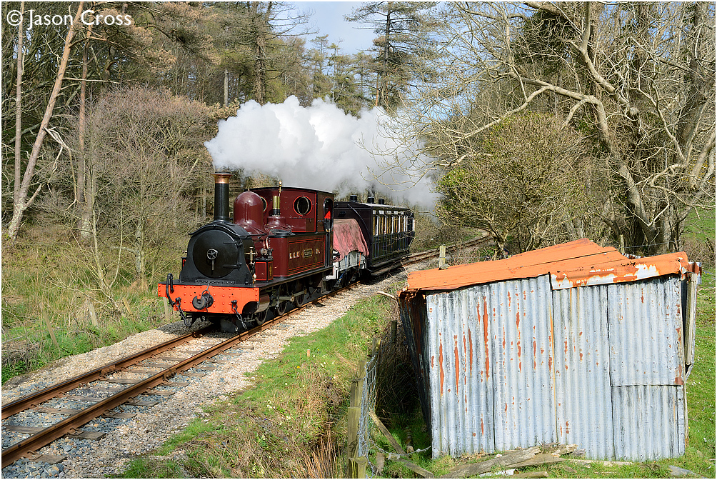 MNR 4 'Caledonia' emerges from Crogga Woods. David Williams photo charter. Date: 9 April 2014 Manipulation Notes: None Camera mounted on a tall pole and remotely fired
