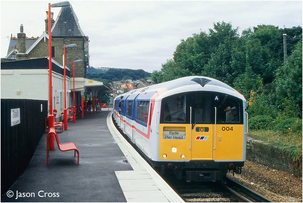 483004 and 483005 wait to depart from Shanklin for Ryde Pier Head. Date: 18 August 1992 Manipulation Notes: None