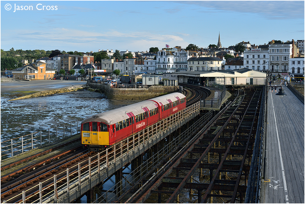 483006 approaches Ryde Esplanade with the 2D55 1907 Ryde Pier Head to Shanklin. Date: 3 August 2019 Manipulation Notes: None Camera mounted on a tall pole and remotely fired