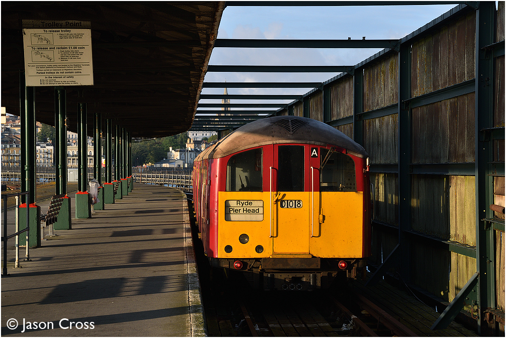 483008 catches the sun at Ryde Pier Head while it waits to depart with the 2D05 0649 to Shanklin. Date: 6 August 2019 Manipulation Notes: None